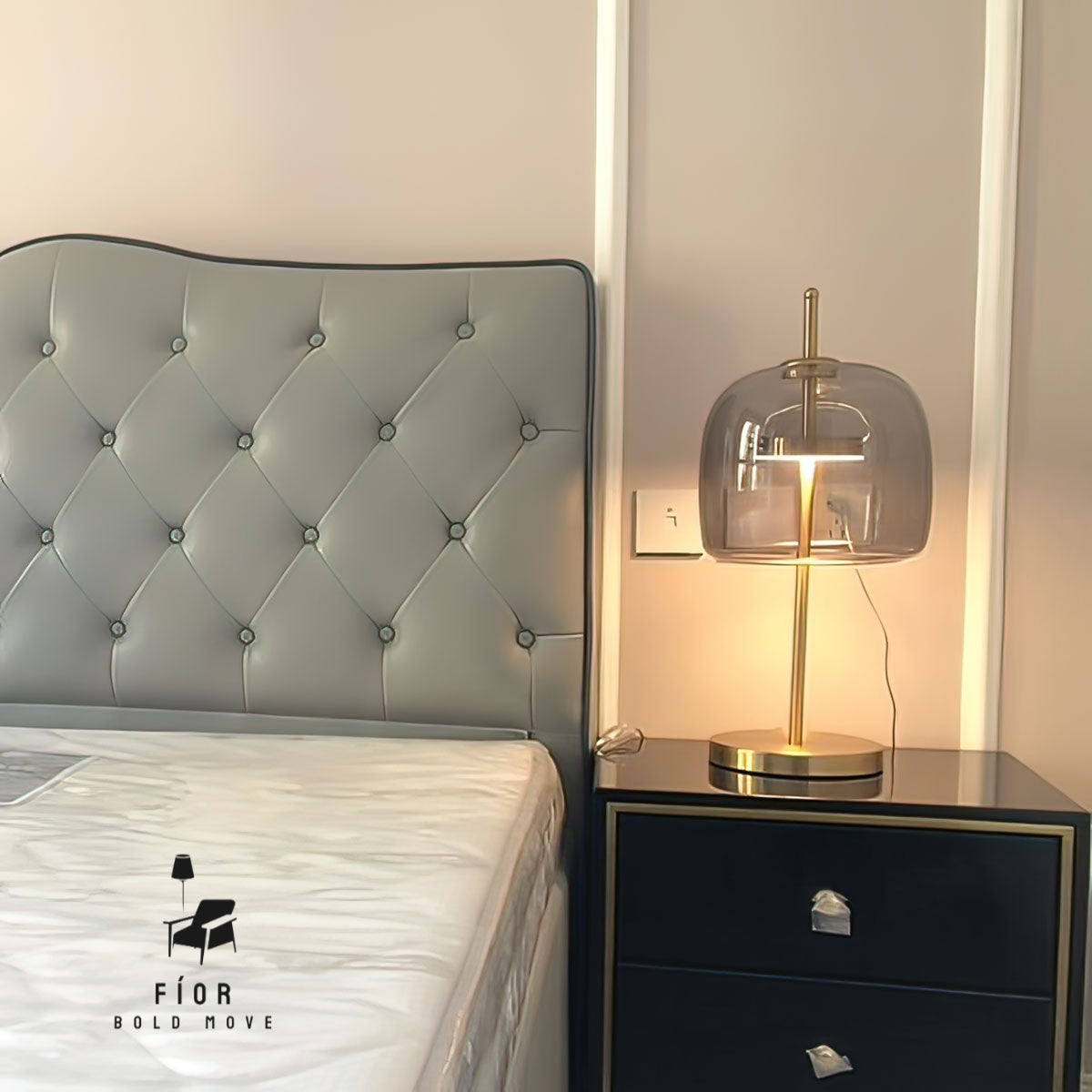 Elevate your space with the Cairo Modern Table Lamp – a sophisticated fusion of minimal design and smart functionality. Crafted with a sleek tinted glass shade and a brass-finished frame, this lamp brings a warm, sculptural element to any contemporary interior.
